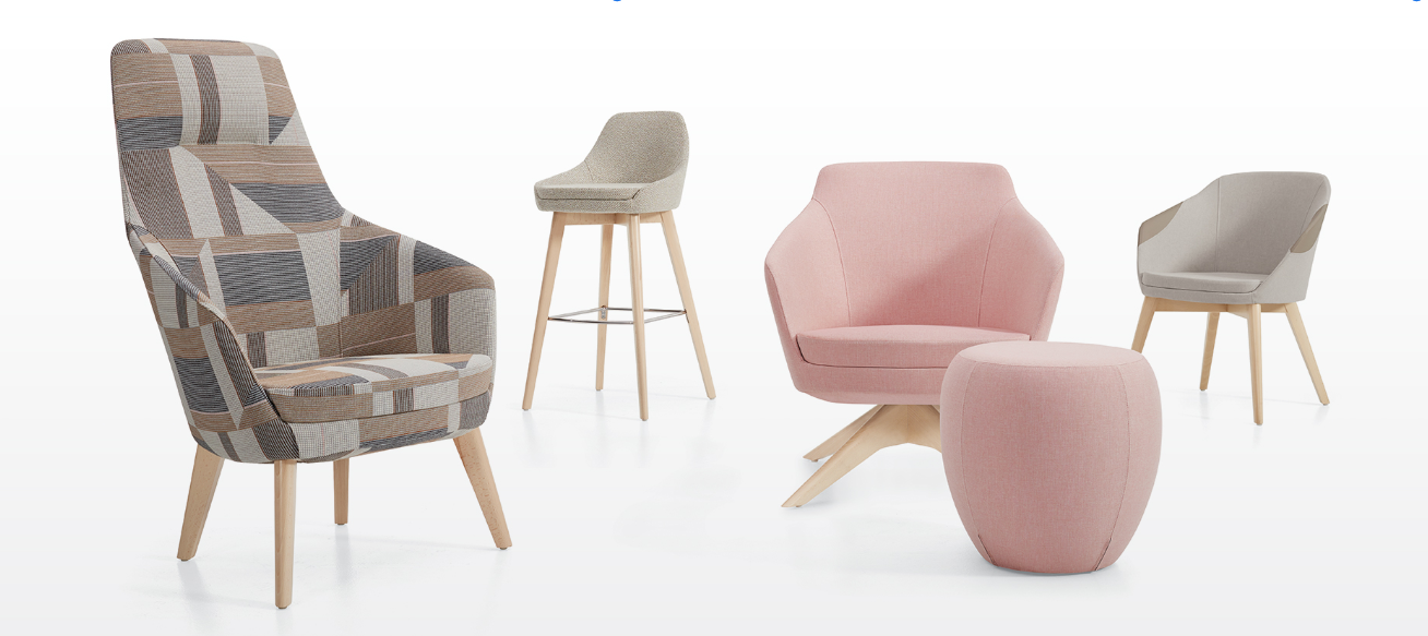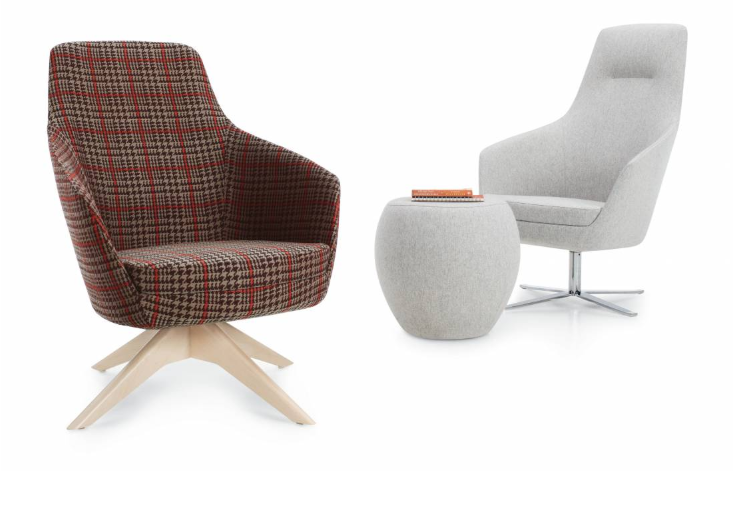 - Choose from a wood base four-leg and swivel models, available in a wide range of popular finishes, bring added warmth to this contemporary seating series.