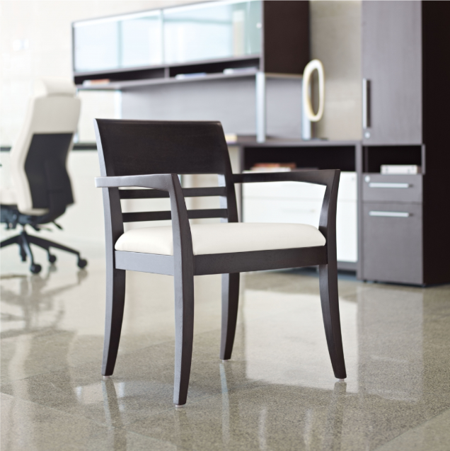 - Natural wood trim and clean, classic lines embody the side and guest chairs from Islands.