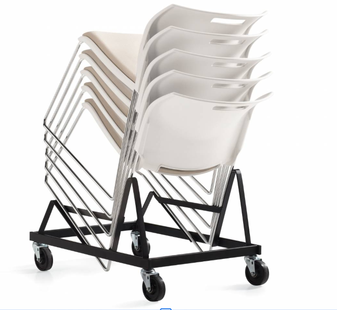 - Polypropylene models can be stacked on dolly 34 high, while upholstered models can be stacked 15 high (standard 80″ door frame). Stools are stackable up to 8 high on the floor but not stackable on dolly.