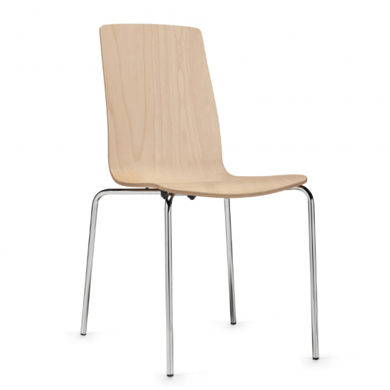 - Sas is a simple design with natural wood finish and a classic chrome base.
