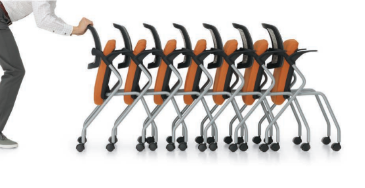 - Nesting chairs have a flip up seat allowing chairs to stack horizontally.