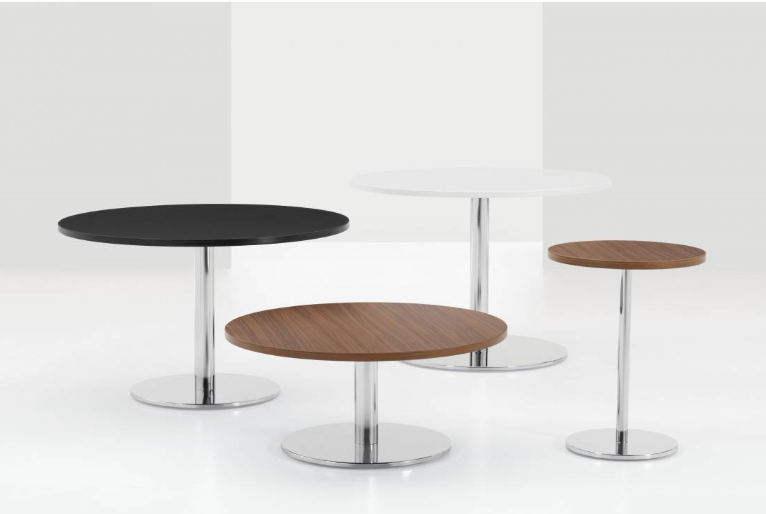 • Square or round at the base, with square or round table tops.