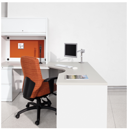 - Synopsis features an ergonomic curved back and a clean, transitional style to fit into any office design.