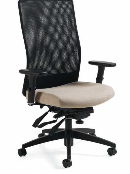 - A comfortable cushion seat meets a breathable mesh back in this simple, ergonomic office chair design.